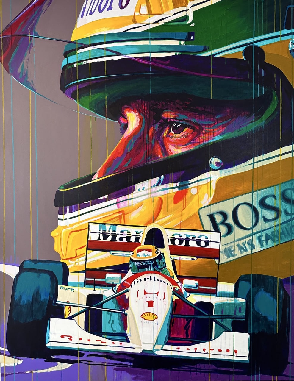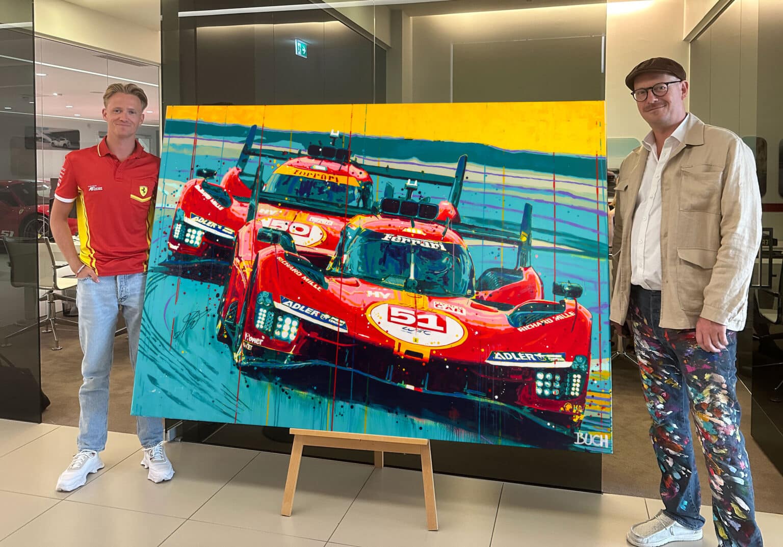 Ferrari 499p hypercars 51 and 50, 24 hours of Le Mans winner 2023 and 2024, Fia wec, endurance race, pop art painting, large scale painting. motorsport. carcollector, on wall